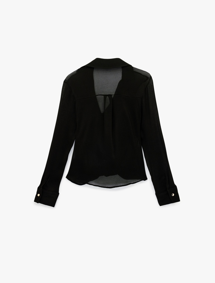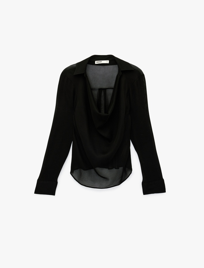 Viskon Karışımlı Uzun Kollu Degaje Yaka Tül Bluz