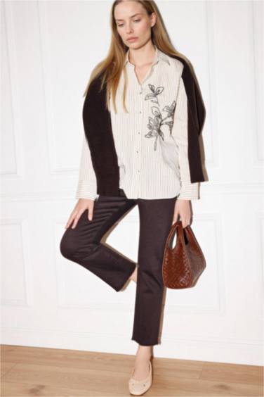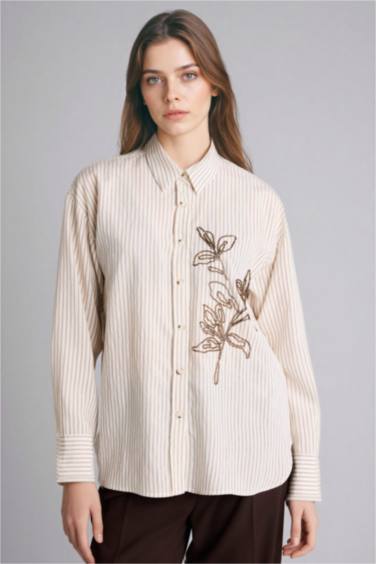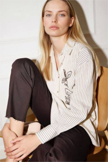 Relax Fıt Nakışlı Çizgili Gömlek — defacto | Oneri