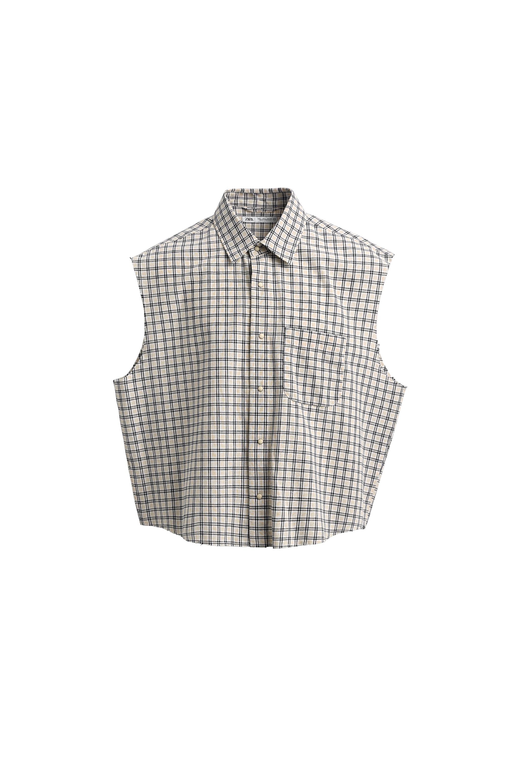 KARELİ BOXY FIT KOLSUZ GÖMLEK