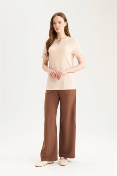 Regular Fit Cepli Krep Geniş Paça Palazzo Pantolon