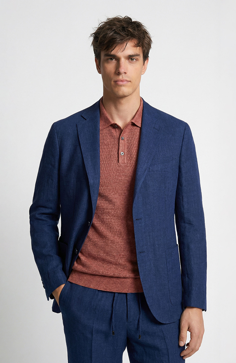 Lacivert keten klasik ceket, temiz ve dengeli bir stilin ta kendisi. Klasik kesimiyle hem ofis hem de günlük kullanıma uygun bir parca olarak dikkat çeker. Uzun gövdeli tipler için idealdir; omuz hizasında kesimle vücut hatlarını doğal bir şekilde vurgular. Beyaz tisörtle ve yüksek bel jeans ile kombinleme yaparsanız, rahat ama zarif bir günlük görünüm elde edersiniz. Aynı ceketi, açık mavi bluz ve siyah pantolonla da sadece biraz daha şık bir hale getirebilirsiniz. Renk paletindeki lacivert, rust ve siyah tonlarla uyumlu olacak şekilde aksesuar seçebilirsiniz; siyah deri kemer ve beyaz sneaker ile tamamlayabilirsiniz. Ceketi katlanmadan asmalı, iç katman olarak da giyebilirsiniz. Yüzeyi hafifçe dokulu olduğu için, nemli ortamlarda dikkatli tutulması gerekir.