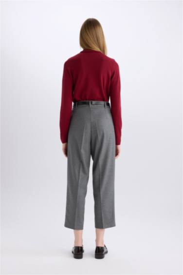 Carrot Fit Pantolon Yüksek Bel Cepli Pensli Kısa Geniş Paça
