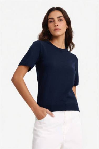 Regular Fit Bisiklet Yaka Kısa Kollu Triko Kazak