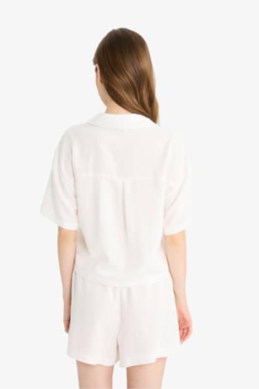 Oversize Geniş Kalıp Keten Karışımlı Kısa Kollu Beyaz Gömlek