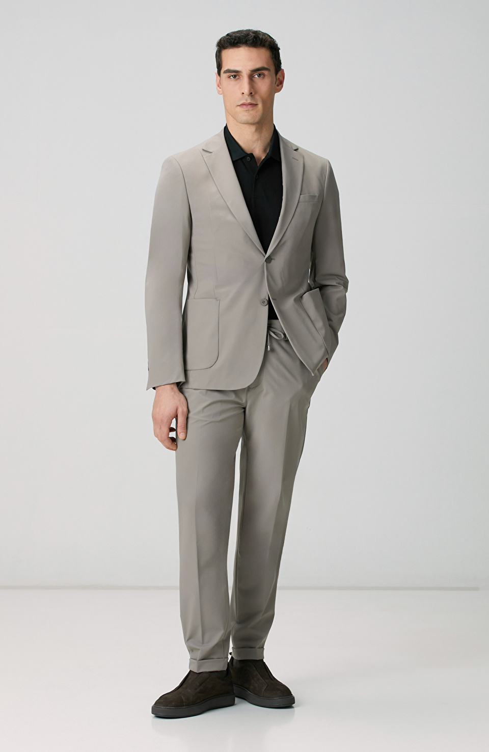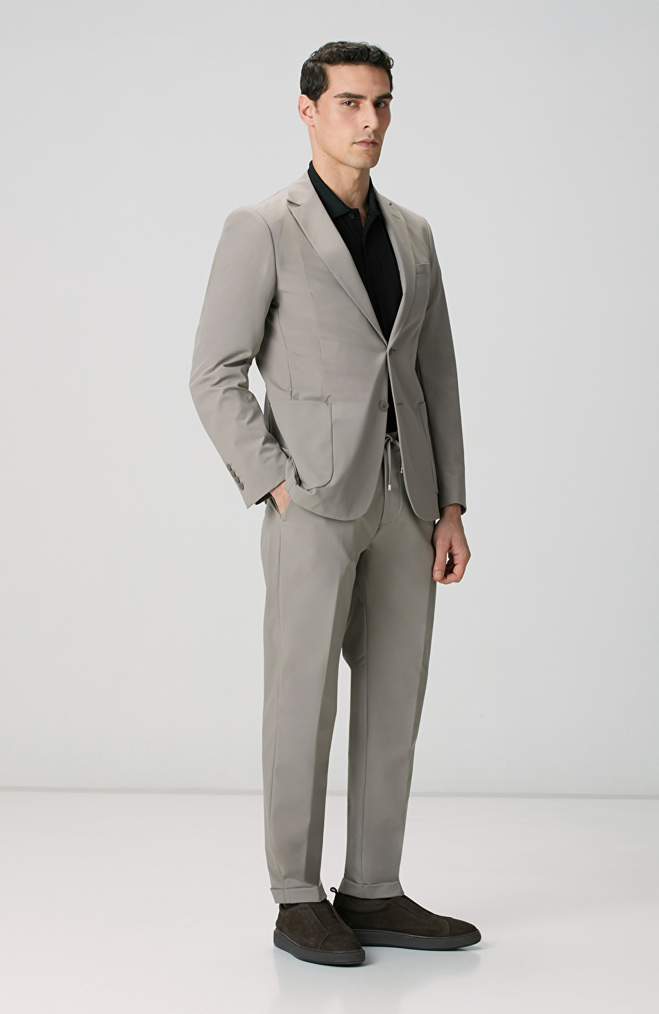 Düşük omuz gömlek, kemerli şalvar, sivri topuklu bot ve uzun trençkot — rahat ama keskin bir şehir tarzı.