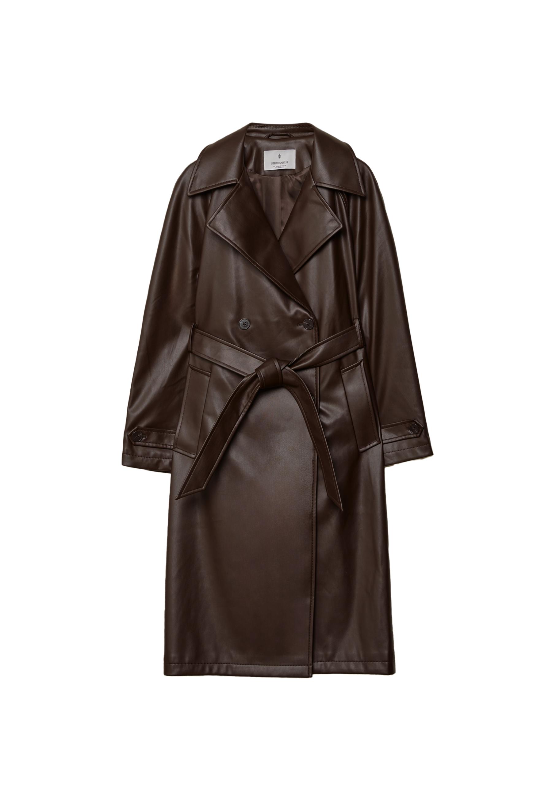 Uzun suni deri trençkot