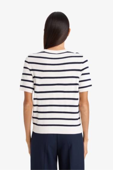 Regular Fit Bisiklet Yaka Çizgili Kısa Kollu Triko Kazak