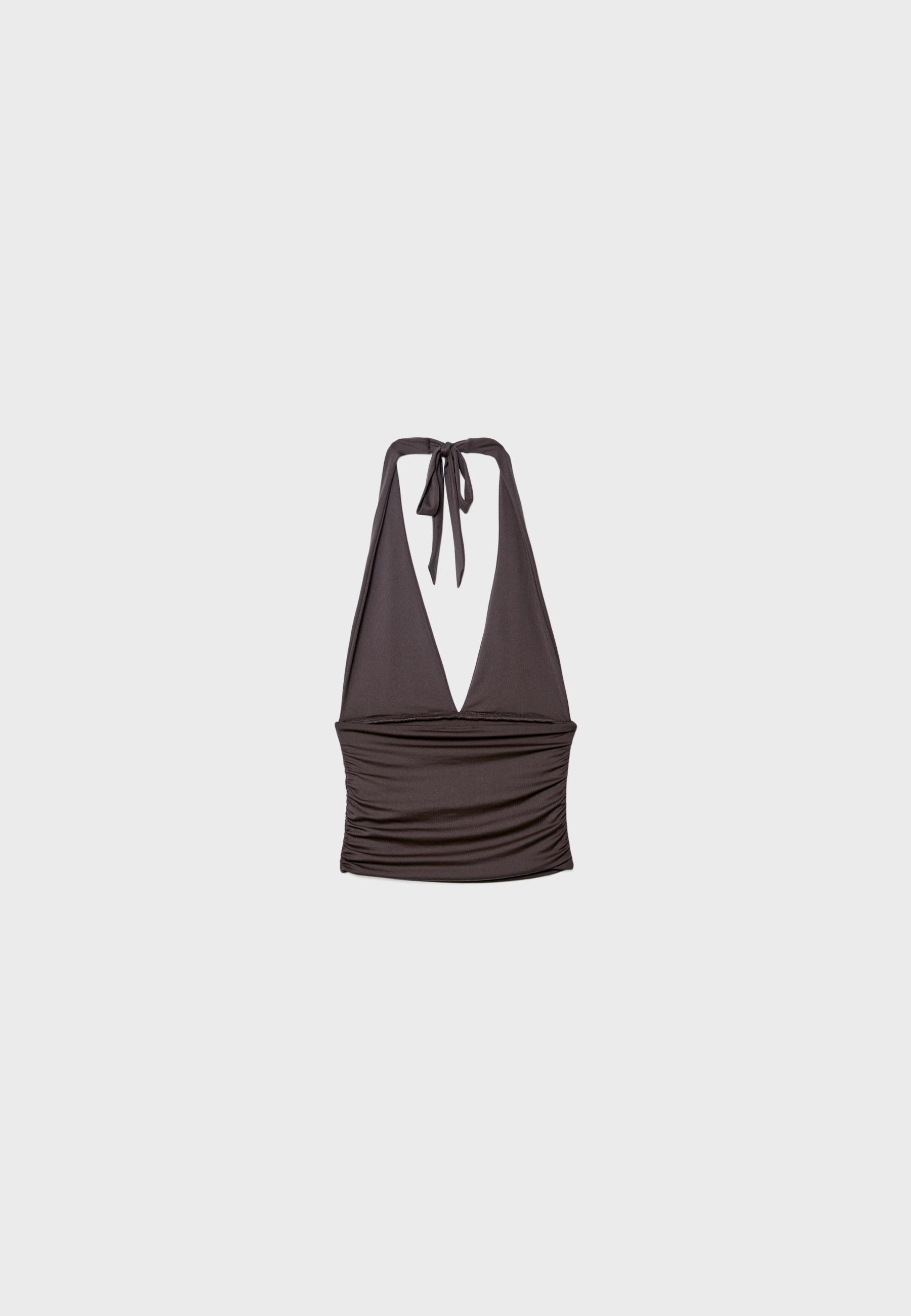 Halter yaka büzgülü top