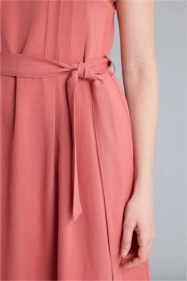 Yuvarlak Yaka Keten Karışımlı Kısa Kollu Elbise