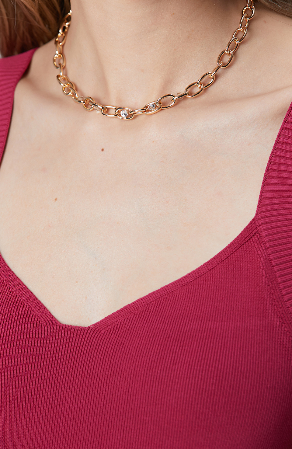 Gold Taşlı Kadın Zincir Kolye