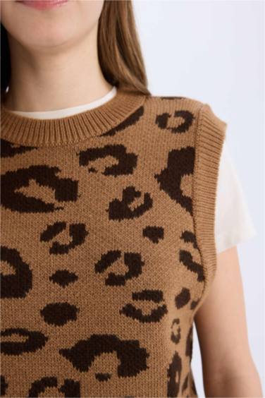 Bisiklet Yaka Leopar Desenli Triko Süveter