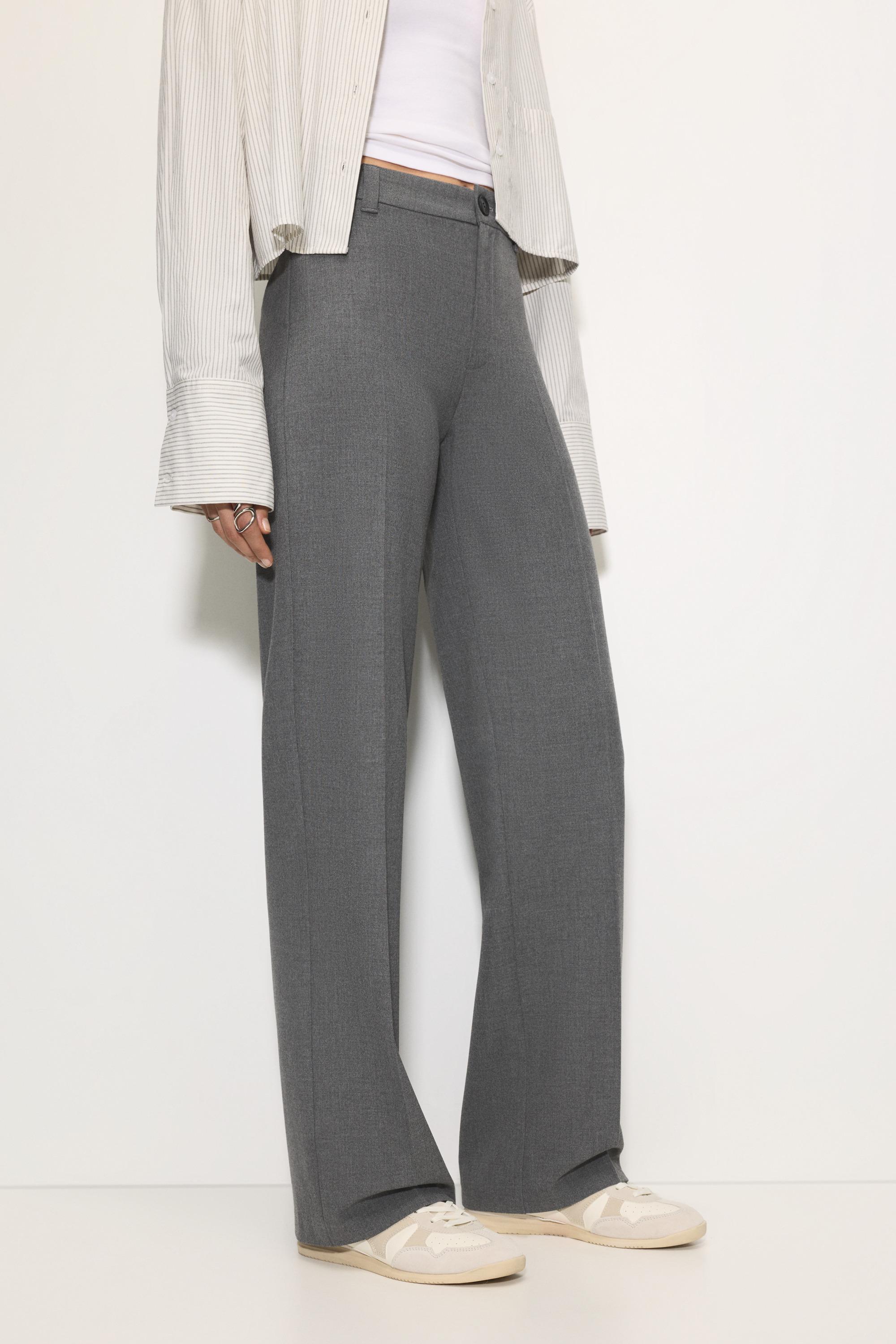 BEL: Yüksek<br/><br/>Düğme ve fermuar kapamalı, kemer köprülü, yüksek belli, tam boy, düz kesim klasik pantolon. Düz renklerde ve ince çizgili desenli olarak mevcuttur. Pantolonun ağ uzunluğu: 83,5 cm.