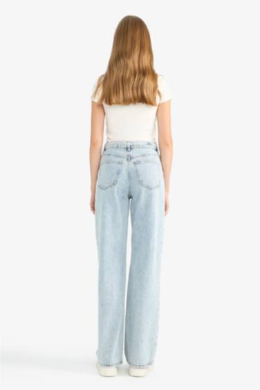 %100 Pamuk Straıght Wıde Yüksek Bel Düz Paça Uzun Jean Pantolon