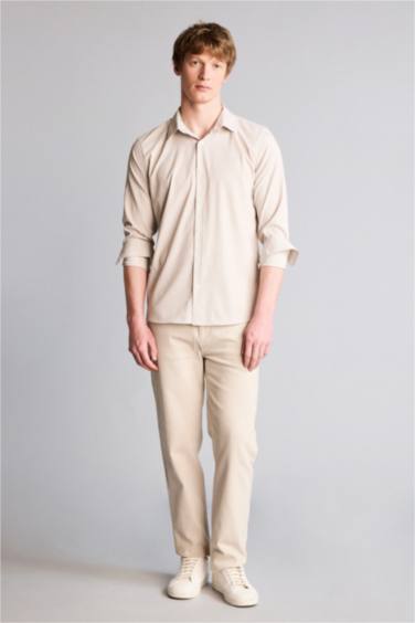 Slım Fıt Gömlek Yaka Poplin Uzun Kollu Gömlek