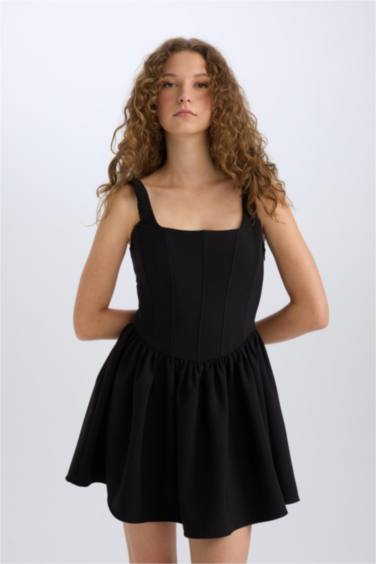 Kare Yaka Askılı Mini Elbise