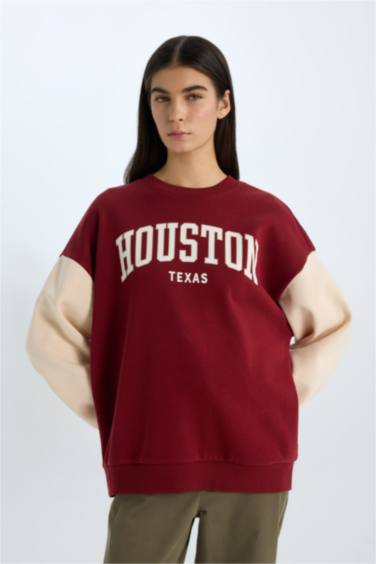 -%60Oversize Geniş Kalıp Bisiklet Yaka Baskılı Kalın Sweatshirt