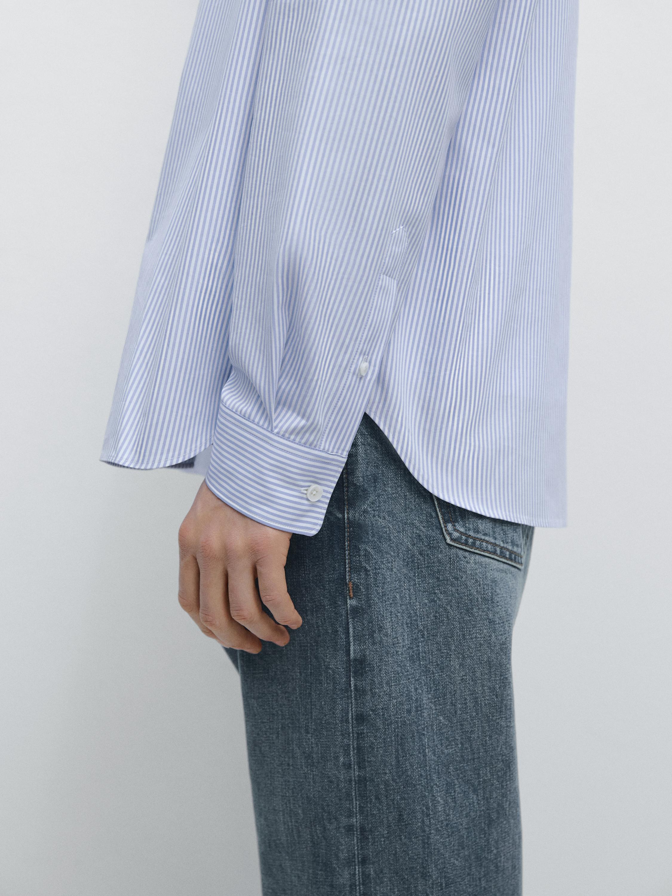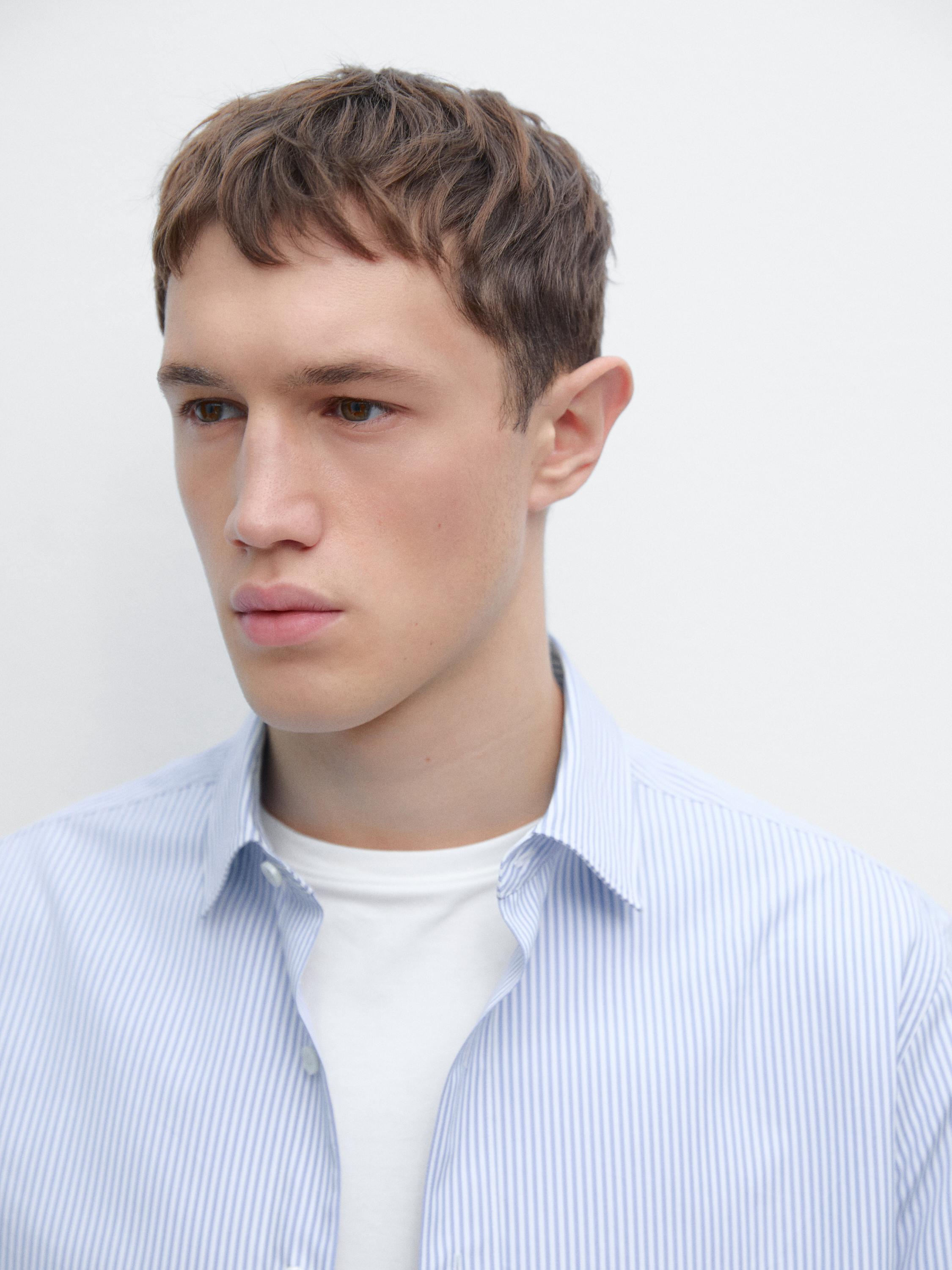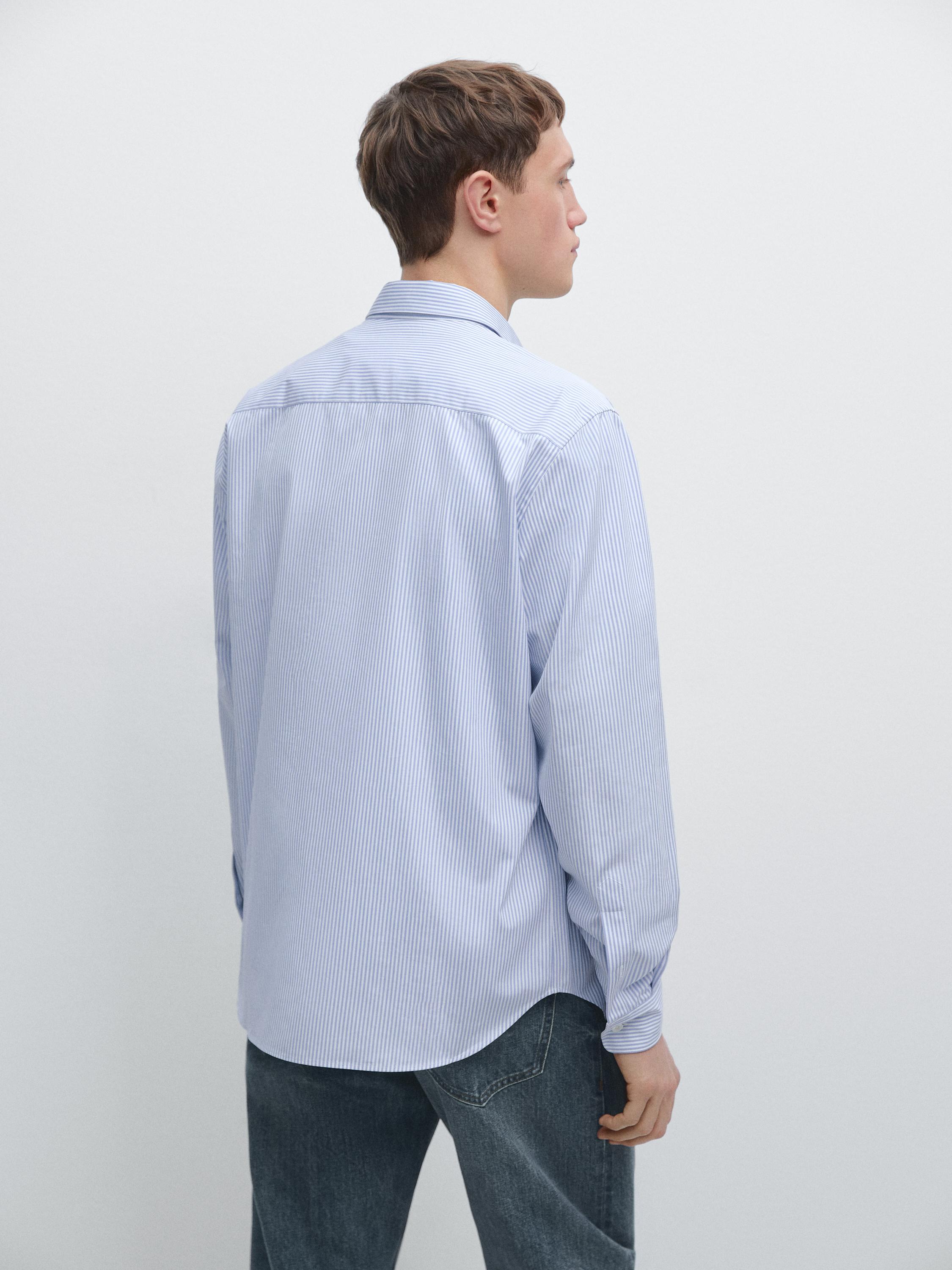 %100 pamuklu regular fit çizgili gömlek