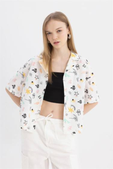 Coool %100 Pamuk Oversize Pijama Yaka Desenli Kısa Kollu Gömlek
