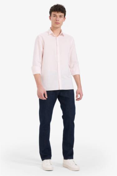 Regular Fit Polo Yaka Keten Yazlık Uzun Kollu Gömlek