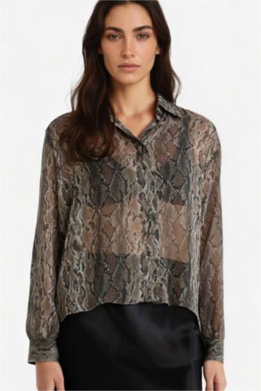 Regular Fit Yılan Derisi Desenli Şifon Uzun Kollu Gömlek