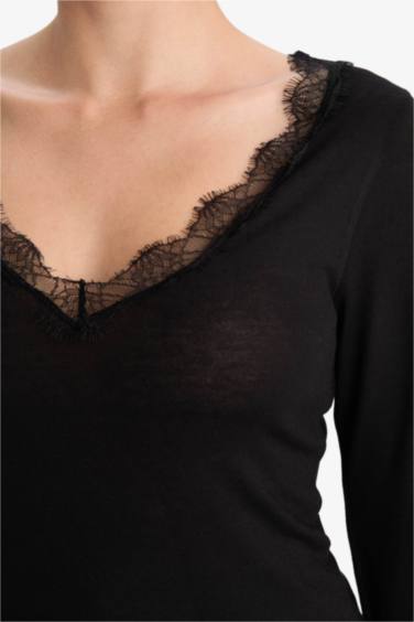 Modal Kaşmir Yumuşak Dokulu Dantelli Uzun Kollu Üst