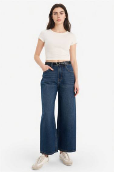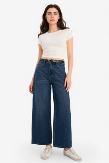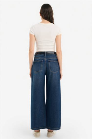 Culotte Yüksek Bel Jean Kar Yıkamalı Pantolon