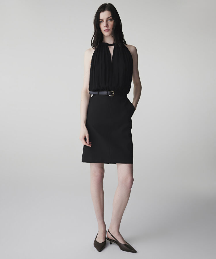 Kemerli çift parça görünüm elbise
