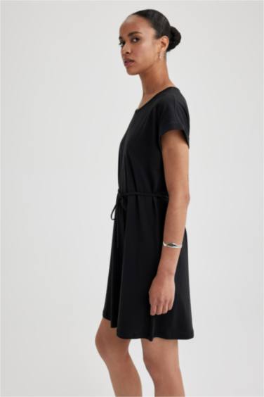A Kesim Bisiklet Yaka Penye Kısa Kollu Elbise