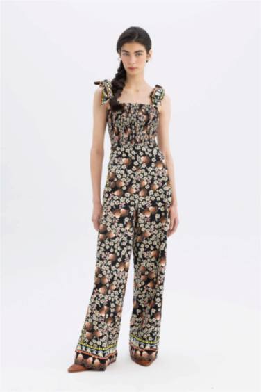 Lug Von Siga x DeFacto Desenli Bağlanabilir Askılı Poplin Uzun Tulum