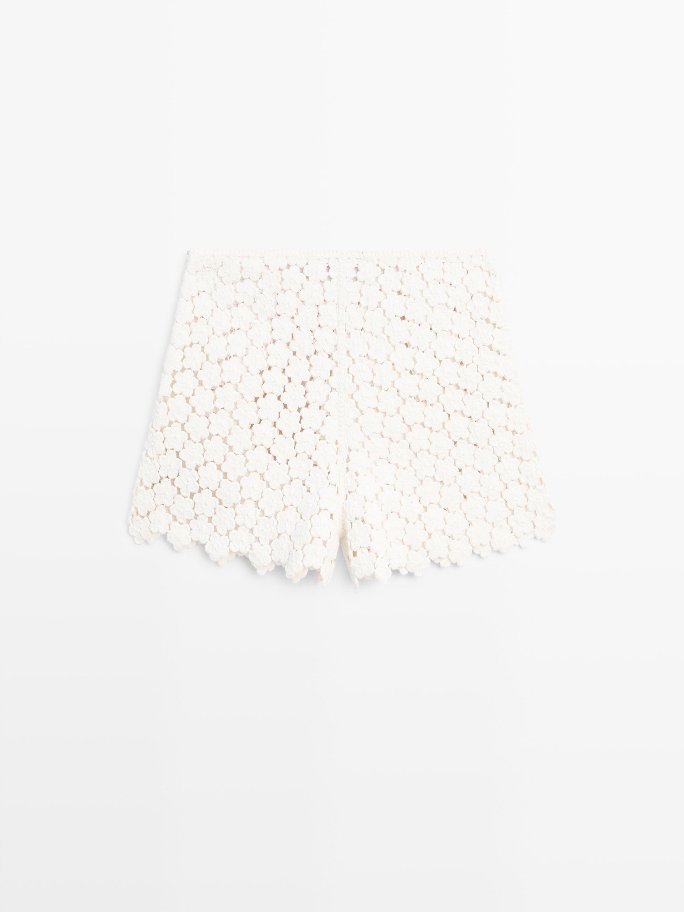 Çiçek detaylı kroşe şort