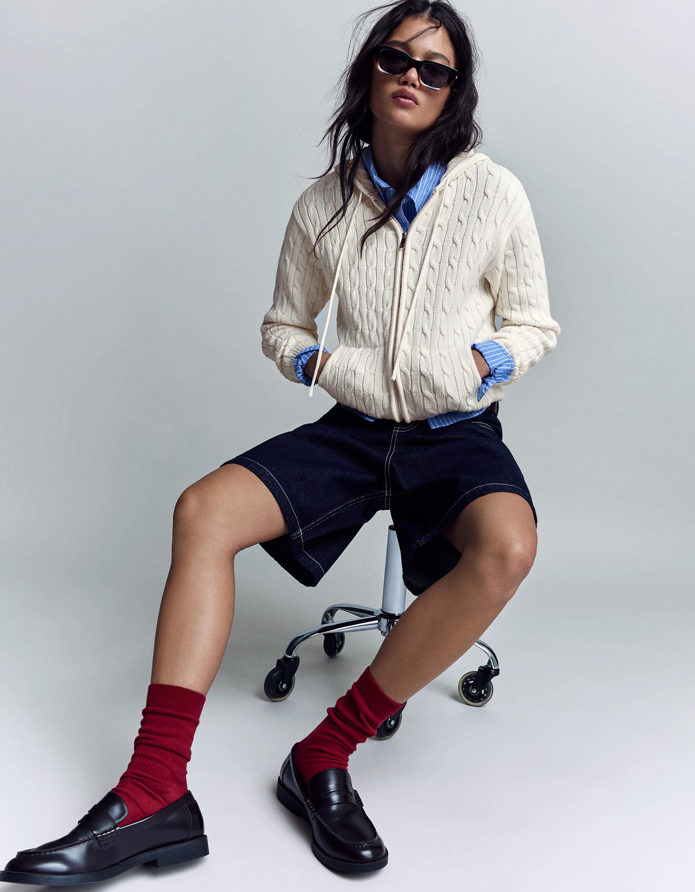 Bershka'nın örgü fermuarlı hırkası, günlük kullanım için hem pratik hem de şık bir seçim. Daha çok klasik ve konfor odaklı tarzda olan bu hırka, her gün giyilebilecek kadar rahat ama aynı zamanda dikkat çeken detaylarla dikkat çekiyor. Uzun gövdeli tiplere ideal çünkü omuz hizasına kadar uzanan kesimi vücut hatlarını dengeliyor. Geniş omuzlara sahip olanlar için ise etek veya pantolonla kombinleme ile denge sağlanabiliyor. Sonbahar ve kış aylarında hem ofis-sonrasi buluşmalarda hem de yürüyüşlerde uygun bir seçenek. Beyaz tisört ve yüksek bel jeans ile kombinleme yaparak daha casual bir hali alırken, siyah bir bluz ve koyu mavi kaban altında da daha serim bir görünüm elde edilebilir. Renk olarak krem, mavi, kırmızı ve siyah olmak üzere dört seçeneği var. Krem rengi, ılık havalar için harika bir tercih; siyah ise her zaman güvenli bir seçene. Aksesuar olarak siyah deri kemer ve beyaz sneaker ile tamamlayabilirsin. Hırkanın katlanmadan asılması ve nemli ortamlardan uzak tutulması bakım açısından önemli. İç katman olarak da kullanılabilir, böylece daha fazla kombin imkanı sunuyor.