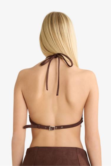 Fitted Boyundan Bağlamalı Süet Bluz