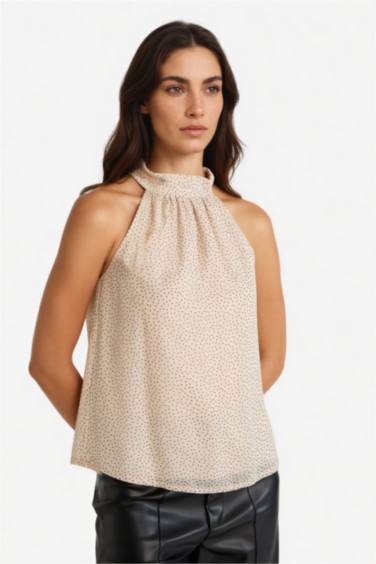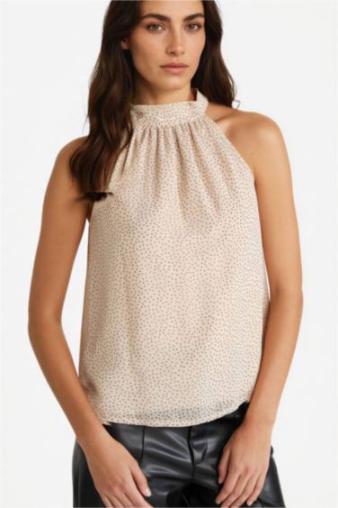 Regular Fıt Halter Yaka Şifon Kolsuz Bluz