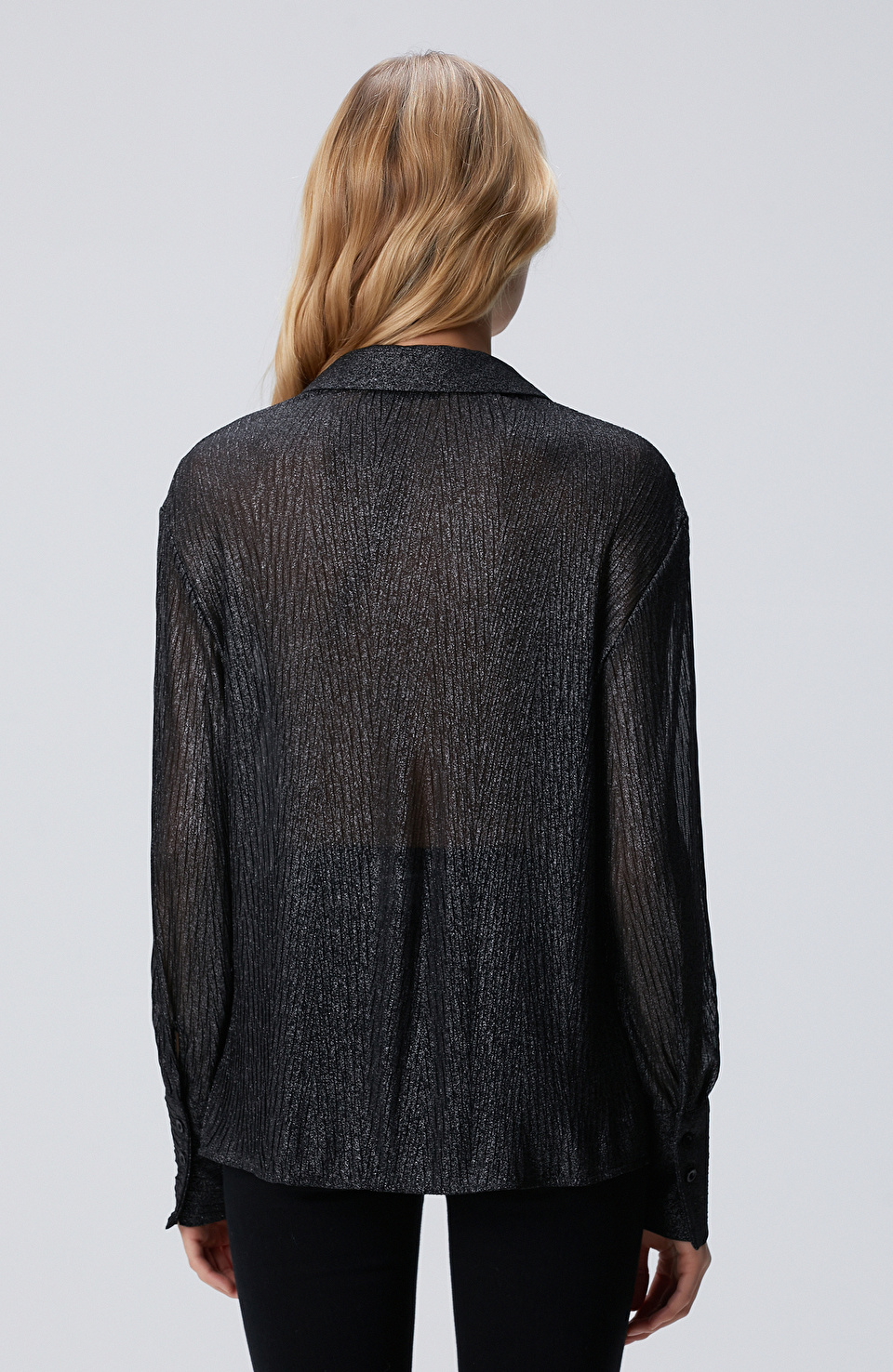 Siyah Simli Desenli Geniş Manşetli Gömlek
