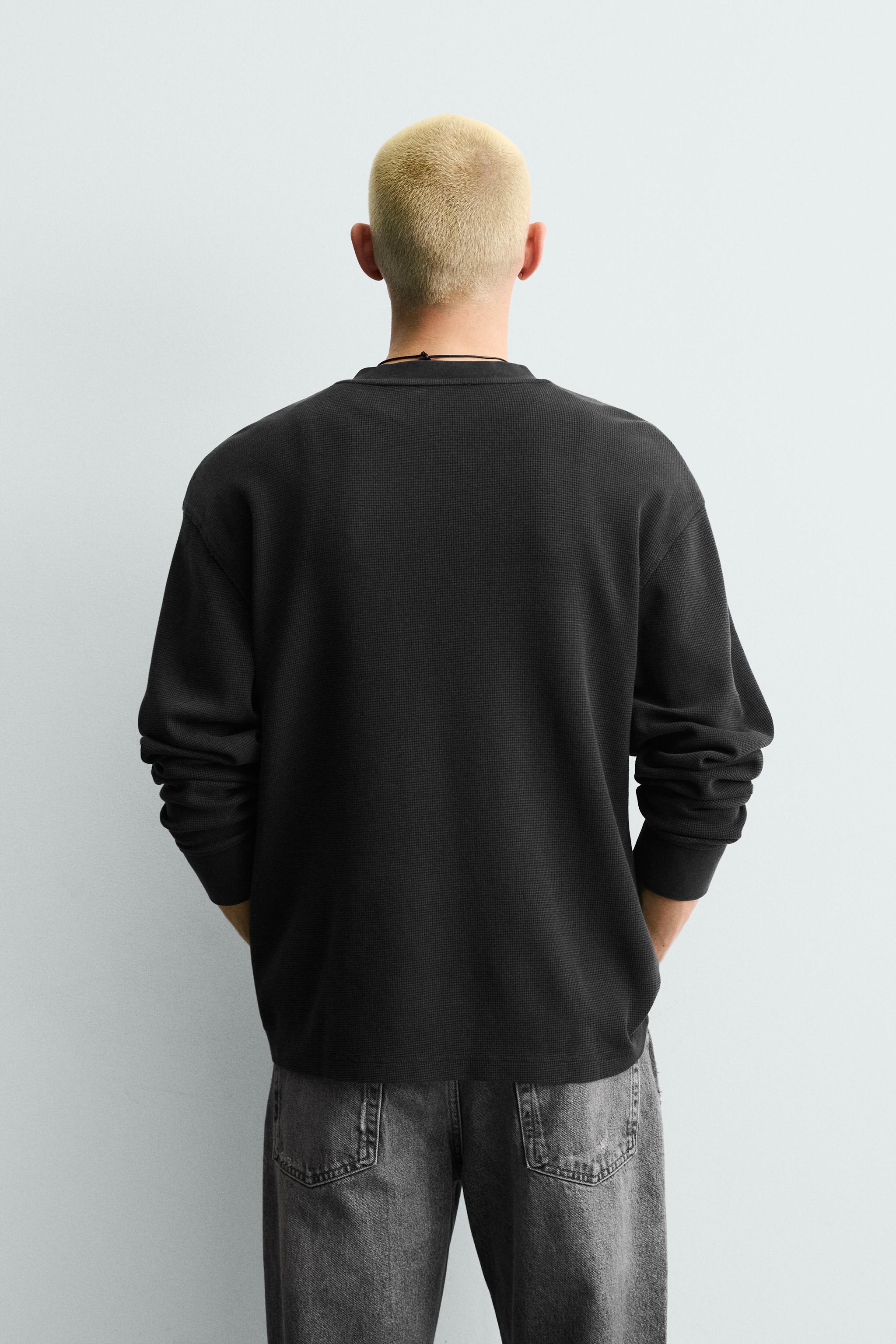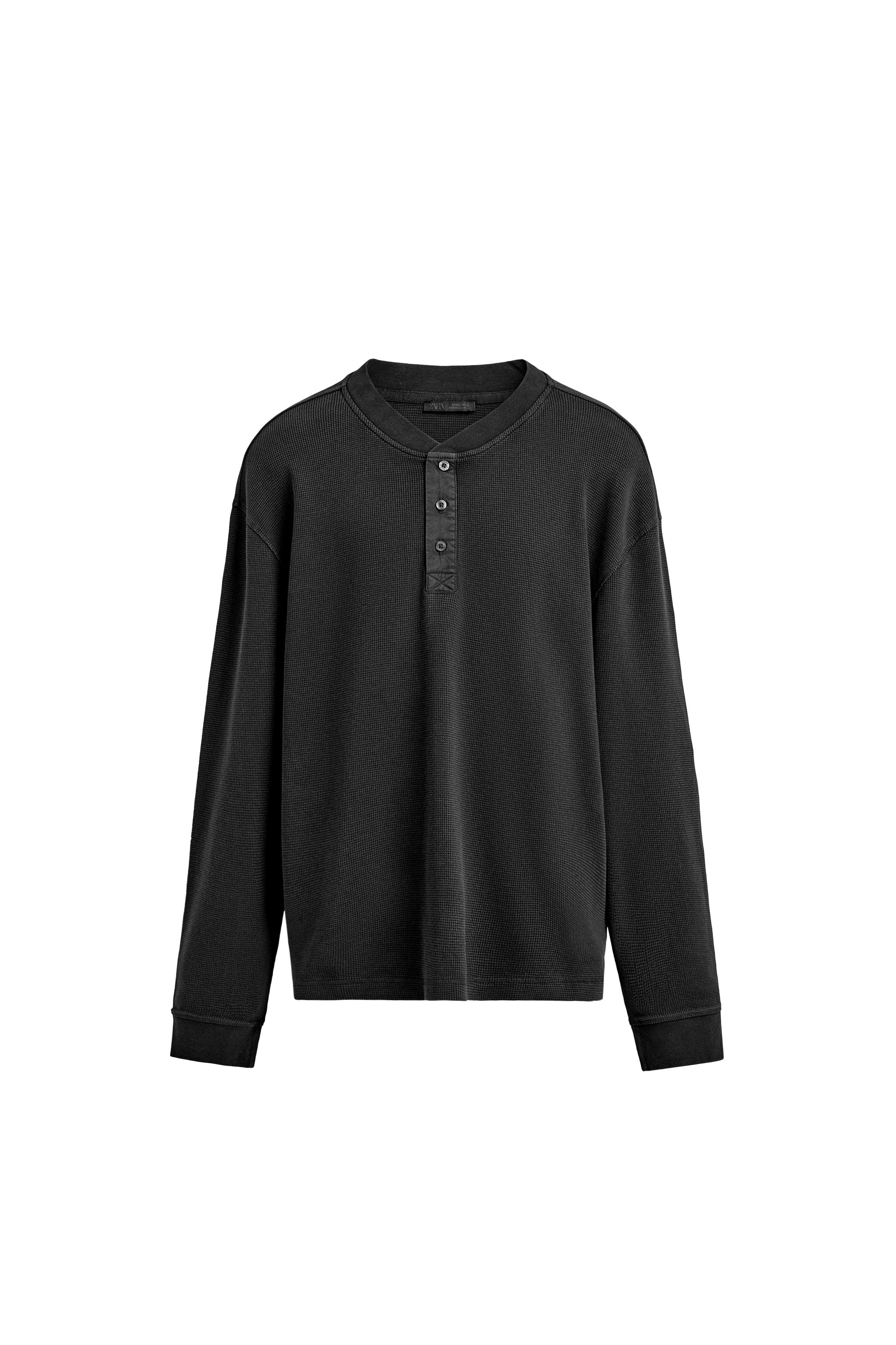 HENLEY NECK WAFFLE-KNIT T-SHIRT