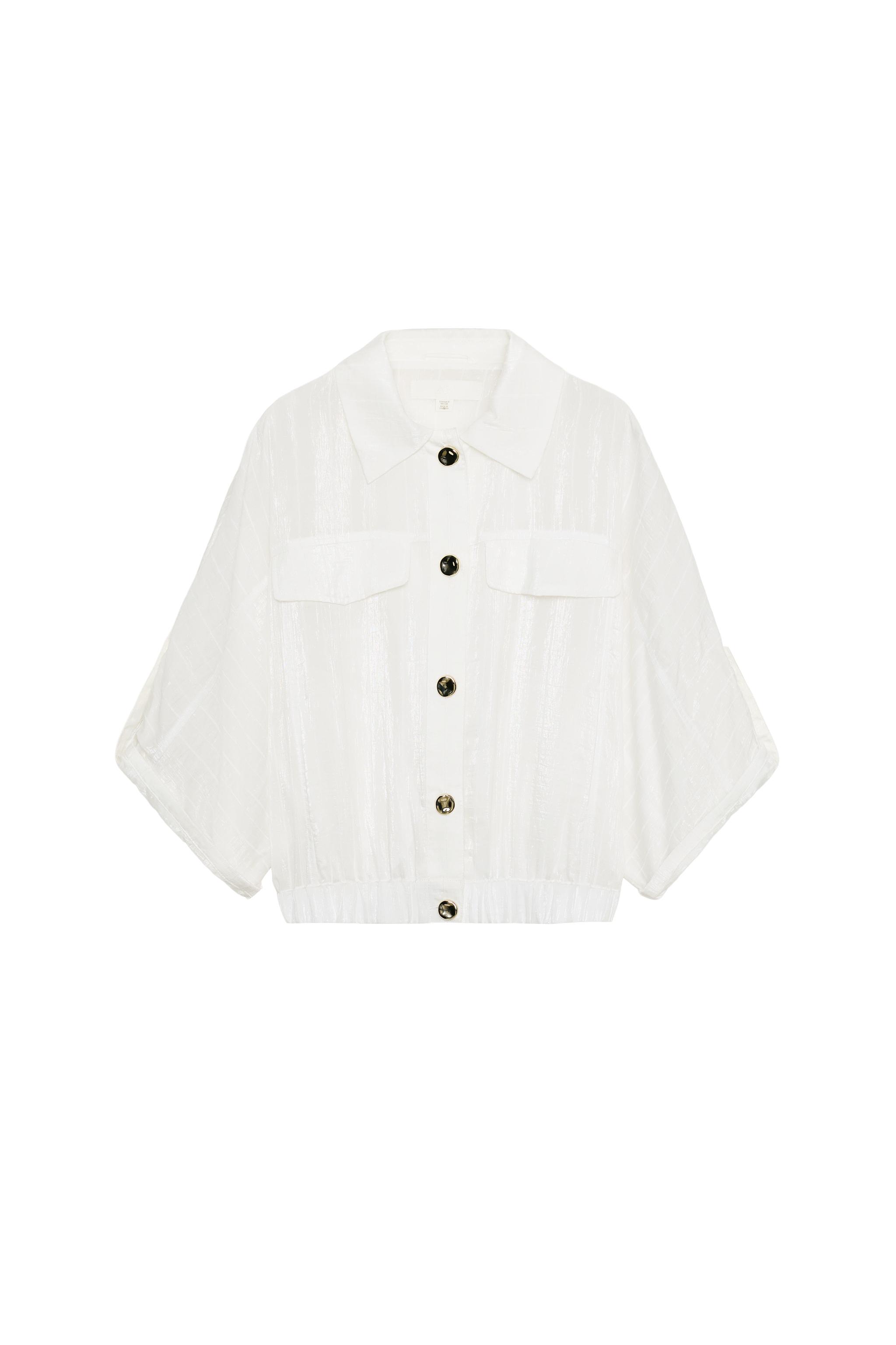 Beyaz renkli bu kivrik kollu bluz, temiz ve sade bir estetikle dikkat çeker. Kaskatı kolları ve hafif gevşek kesimiyle her vücut tipine uygun olup, özellikle uzun gövdeli tipler için idealdir. Sadece bir tane parçayla bile güçlü bir görünüm yaratabilecek şekilde tasarlanmış bu bluz, günlük kullanım için hem rahat hem de şık bir seçenek sunar. Uzun pantolon veya kısa elbise ile kombinlenebilir; örneğin beyaz tisörtle ve yüksek bel jeans ile kombinleme, casual bir haftasonu stili oluştururken, açık yakalı bir elbiseyle giyilmesi ise daha yumuşak ve kadınlaşmış bir hava yaratır. Renk olarak beyaz, her zaman uyum sağlayacak bir temel olduğu için, siyah deri kemer ve beyaz sneaker gibi aksesuarlarla tamamlandığında hem modern hem de dengeli bir görünüm elde edilir. Üst üste giymekten kaçınmak için asılı tutulması ve nemli havada katlanmadan saklanması önerilir. Her gün, her ortamda kullanılabilecek bu bluz, kapsül gardirop için mükemmel bir eklentidir.