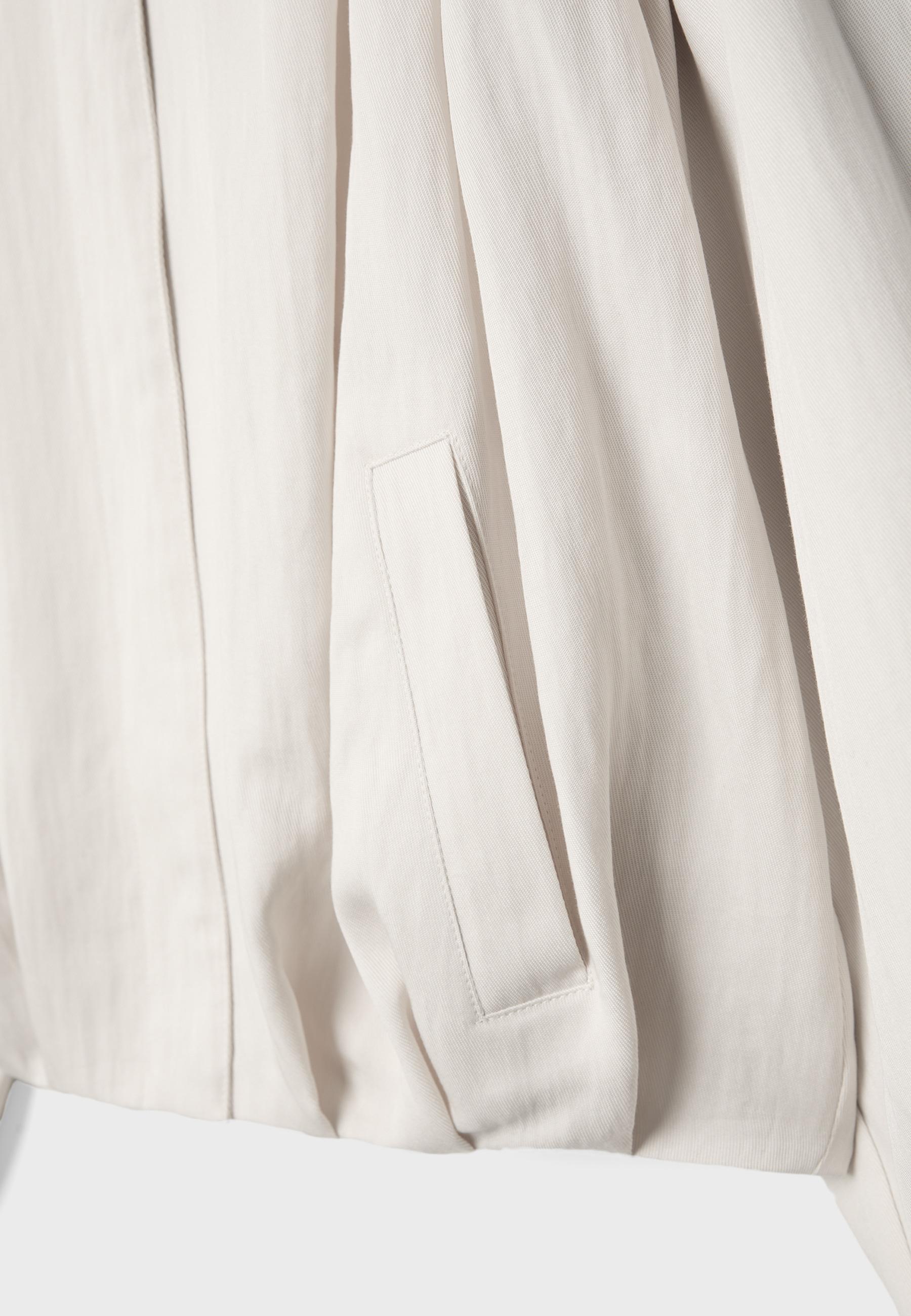 Off-white ve beige tonlarında dökümlü bir kesimle sunulan bu ceket, temiz hatlara sahip minimalist tarzın en iyi örneğinden biri. Uzun govdeli tipler için ideal olan bu model, hem hafif hacmi hem de rahat koltuk yapısıyla vücut hatlarını yorucu hissettirmeden destekler. Güneşli bir yaz gününde beyaz tisortle ve yüksek bel jeans ile kombinlemede çok şık bir görünüm yaratır; aynı zamanda sonbahar aksam yürüyüşlerinde siyah bir kot pantolonla da oldukça uyumlu. Renk paletiyle uyumlu olan bir deri kemer ve bej sneaker ile tamamlandığında, günlük yaşamın her anına hafif ama dikkat çekici bir dokunuş katar. Ceketin katlanmadan asılması ve iç katman olarak da kullanılabilir olması, kapsul gardirop için değerli bir parçaya dönüşür.