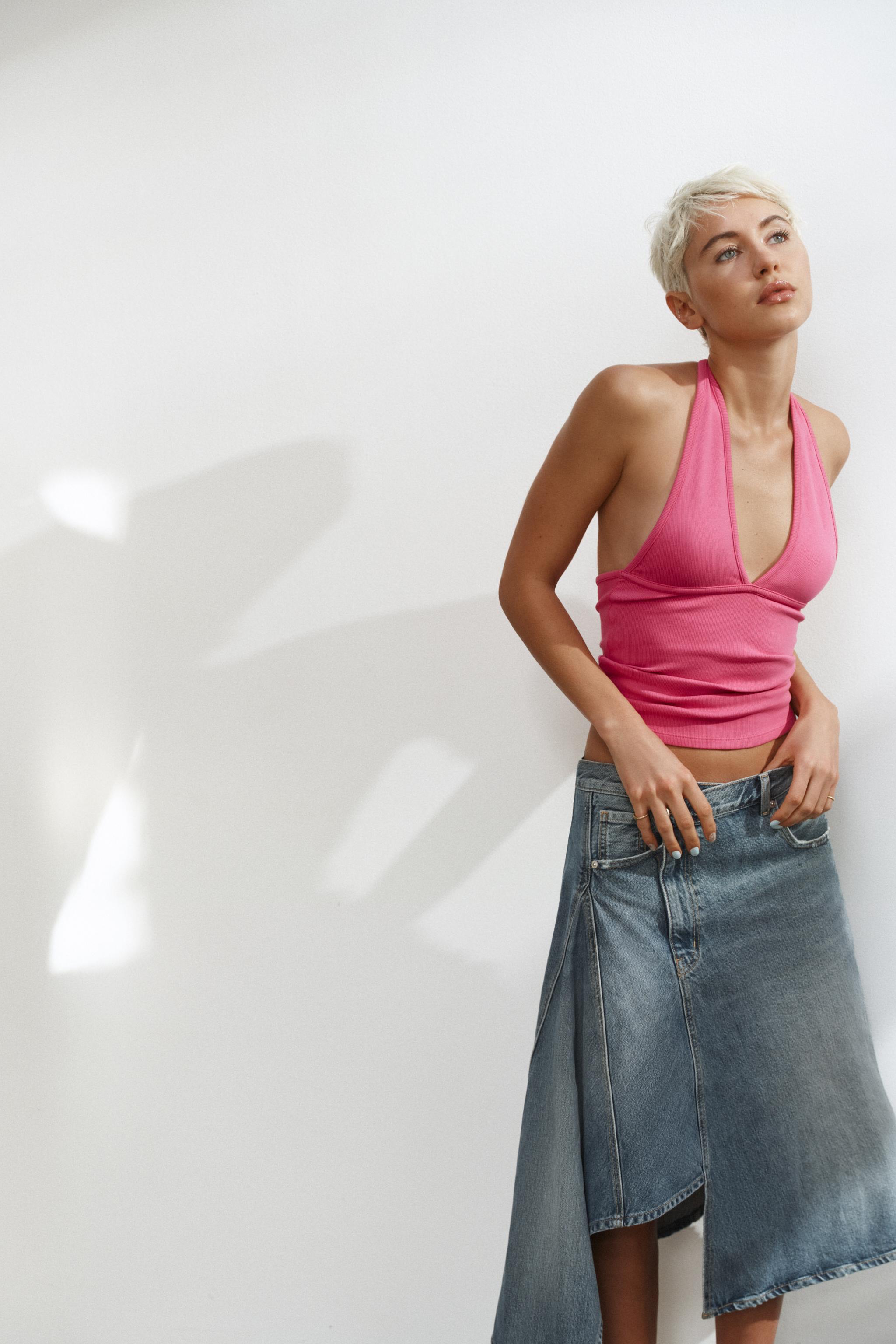 ASYMMETRIC TRF DENIM SKIRT