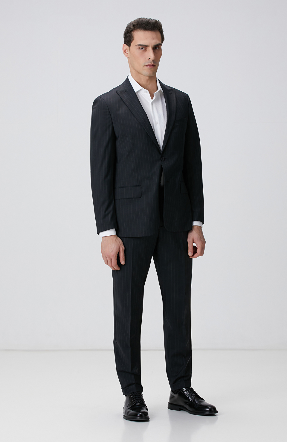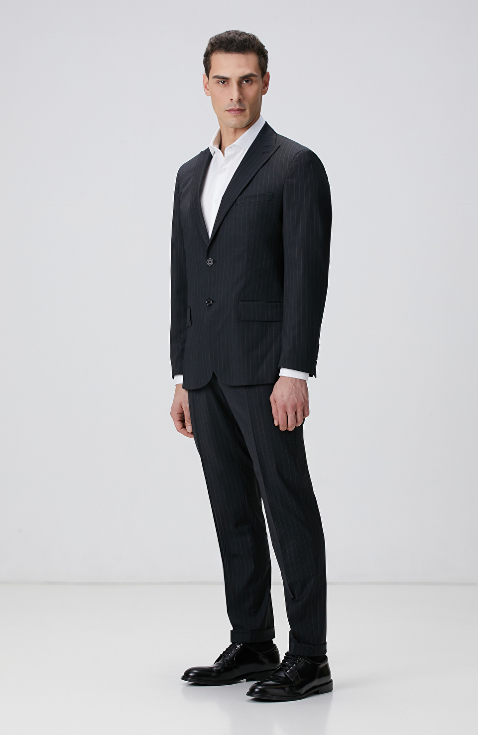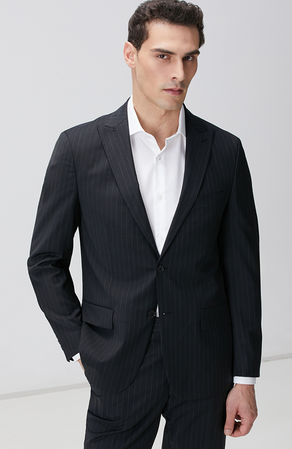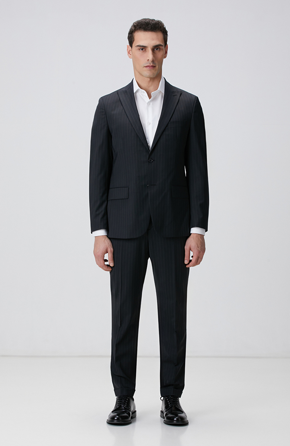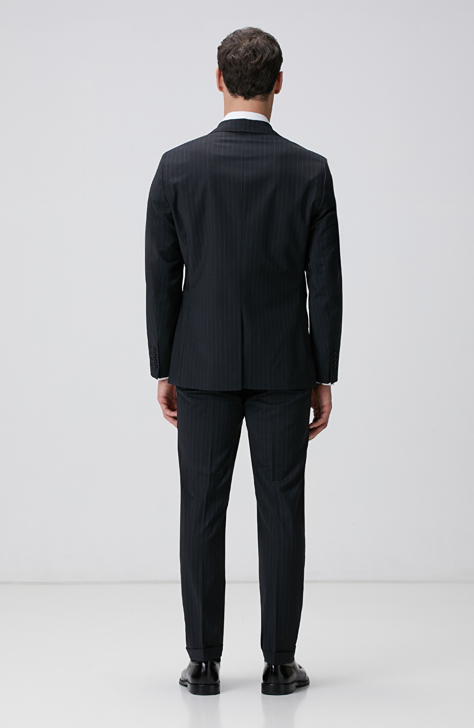 Siyah Çizgi Desenli Yün Karışımlı Takım Elbise