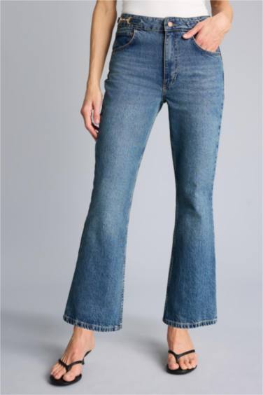 Afra x Defacto Crop Flare Fıt Normal Bel Jean Pantolon