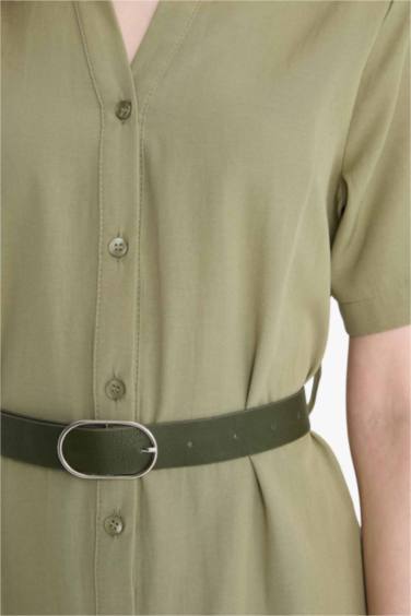 Gömlek Yaka Poplin Kısa Kollu Elbise