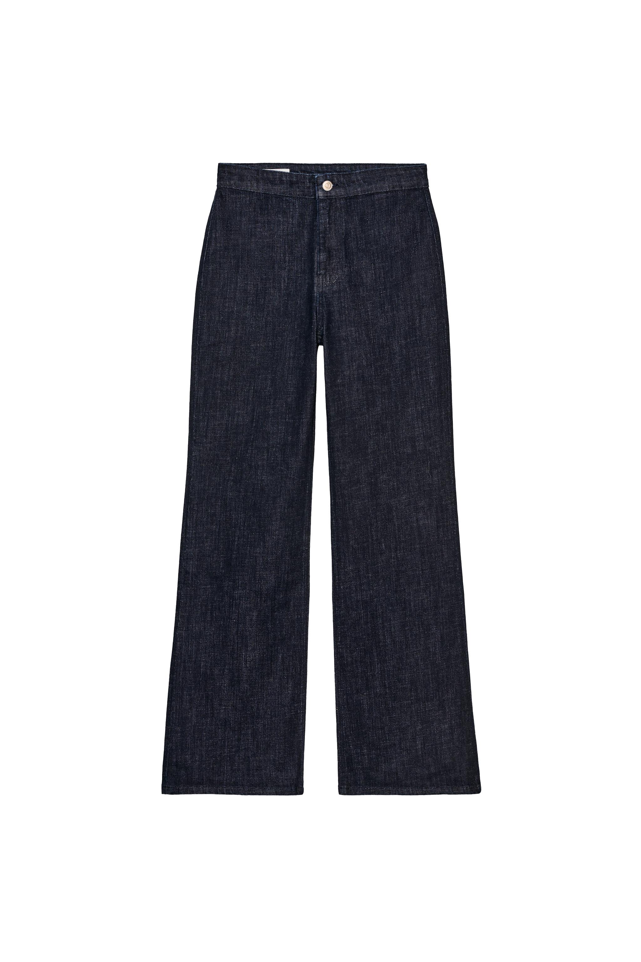 HIGH-WAIST DENIM EFFECT TROUSERS
