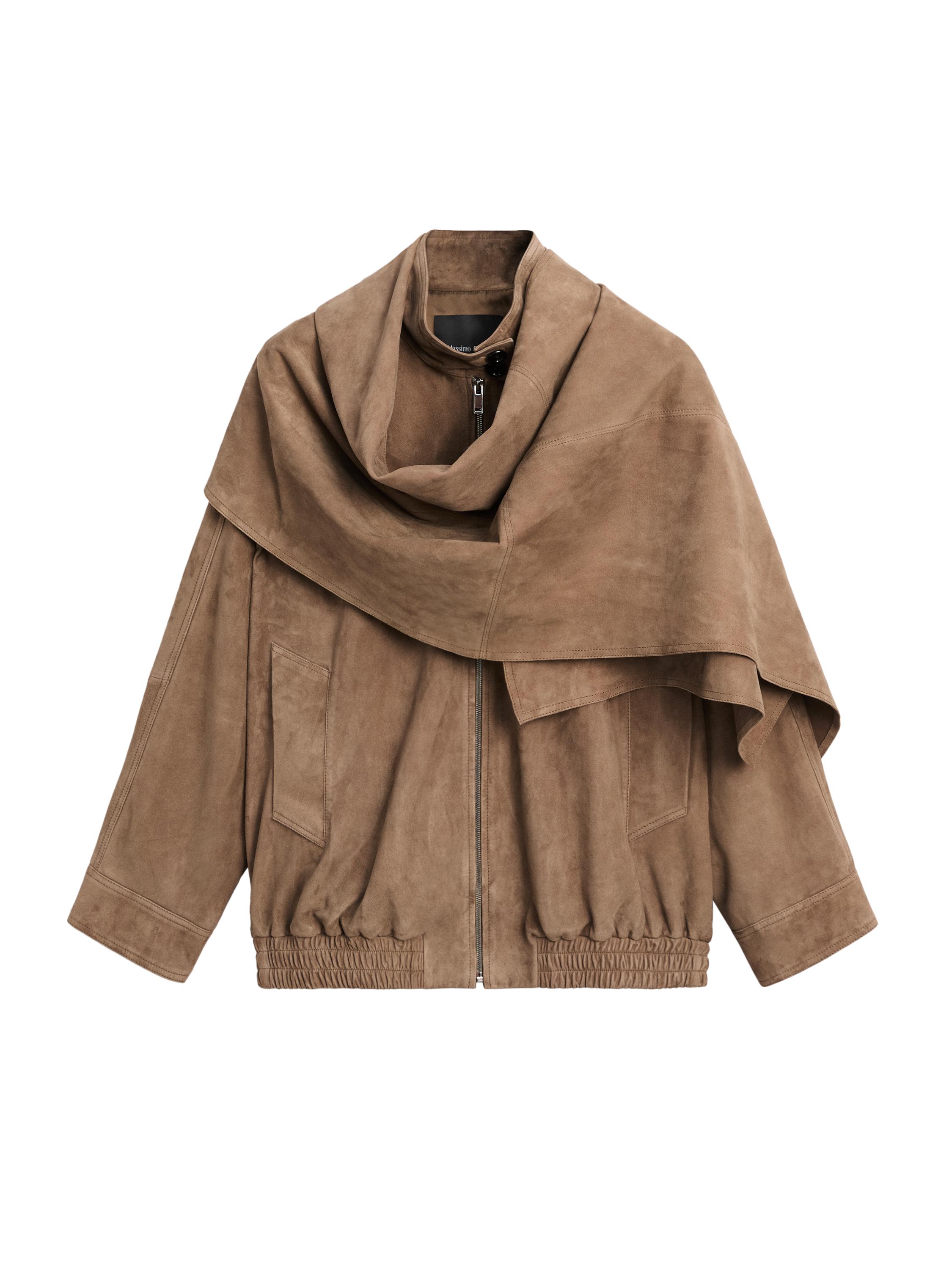 Şal detaylı süet deri bomber ceket