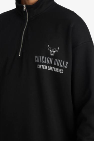 NBA Chicago Bulls Oversize Geniş Kalıp Dik Yaka Fermuarlı Sweatshirt