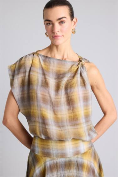 Regular Fıt Kareli Modal Kolsuz Bluz