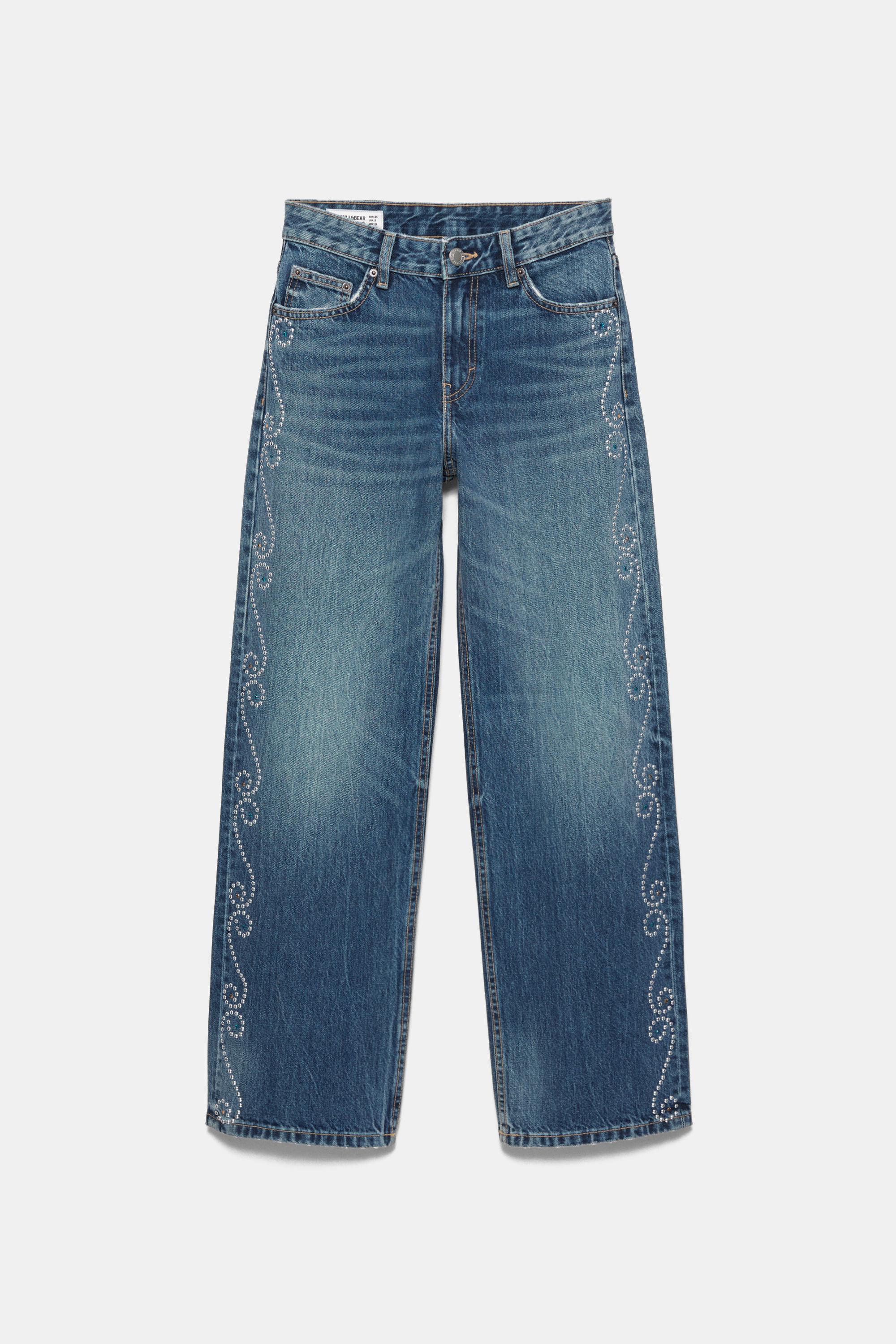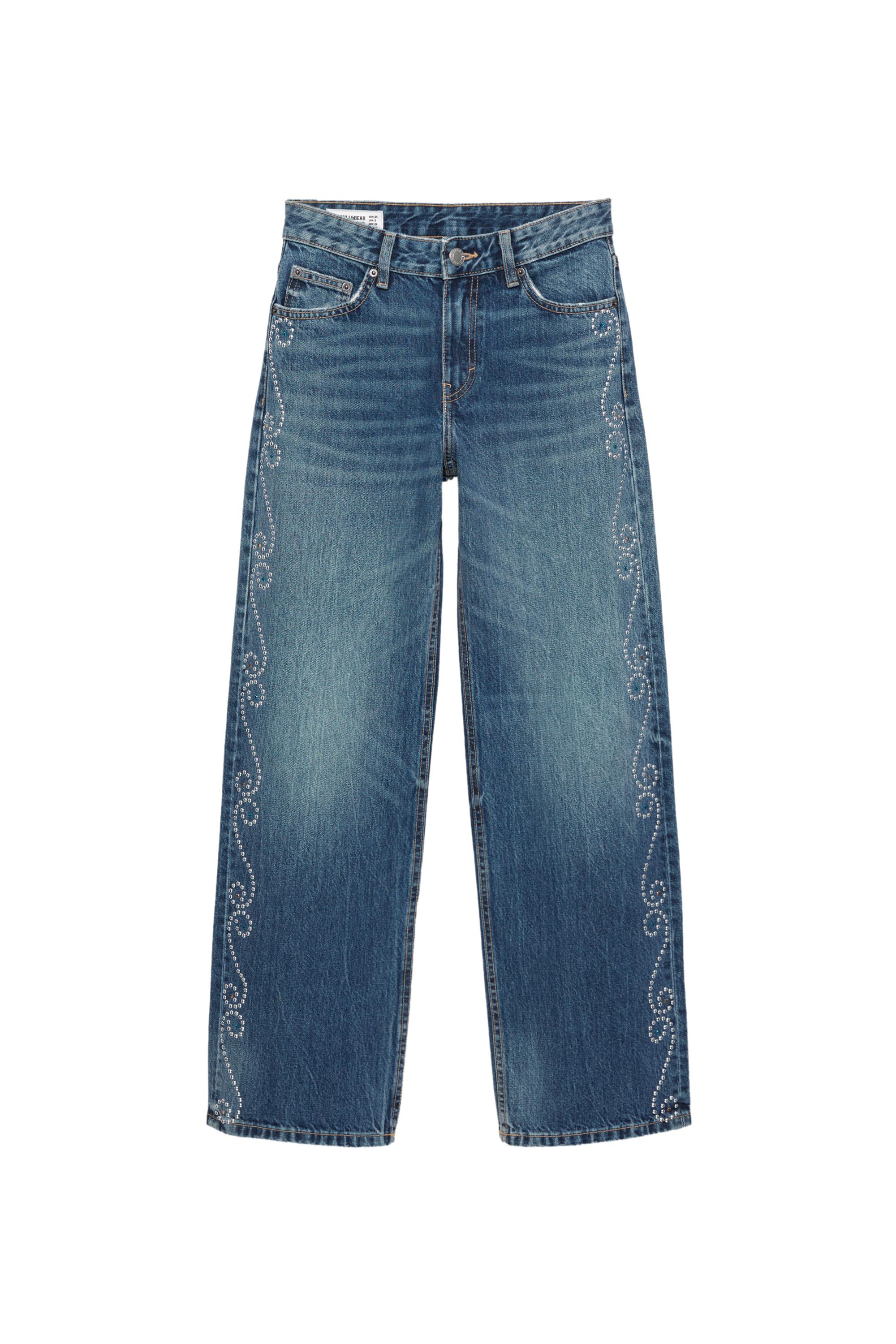 Pamuklu kumaştan, yanları zımba detaylı, beş cepli, kemer köprülü, fermuarlı ve düğmeli, orta bel straight fit jean.