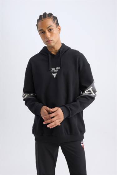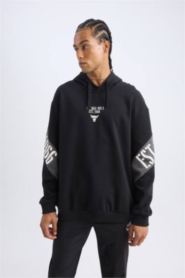 NBA Chicago Bulls Boxy Fit Kapüşonlu Sırt Baskılı Kalın Sweatshirt