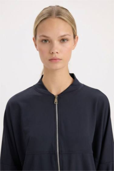 Kolej Yaka Fermuarlı Cepli Basic Düz Bomber Hırka