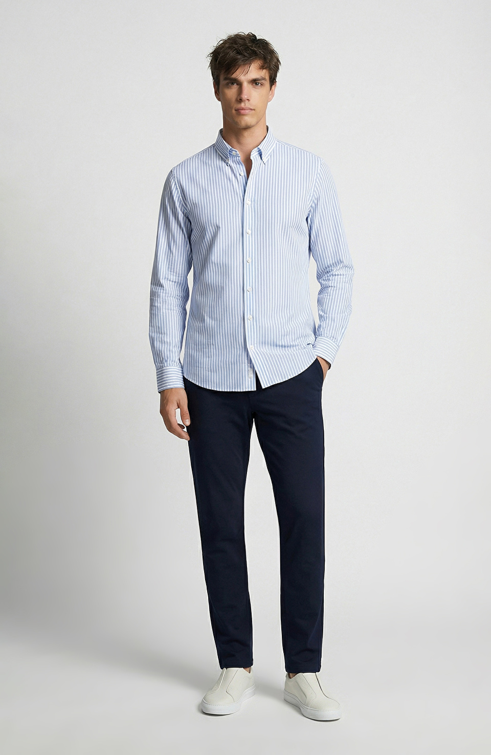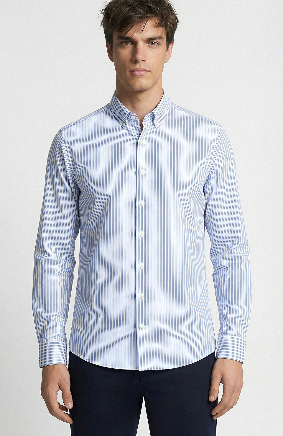 N-Tech Mavi Beyaz Çizgi Desenli Gömlek