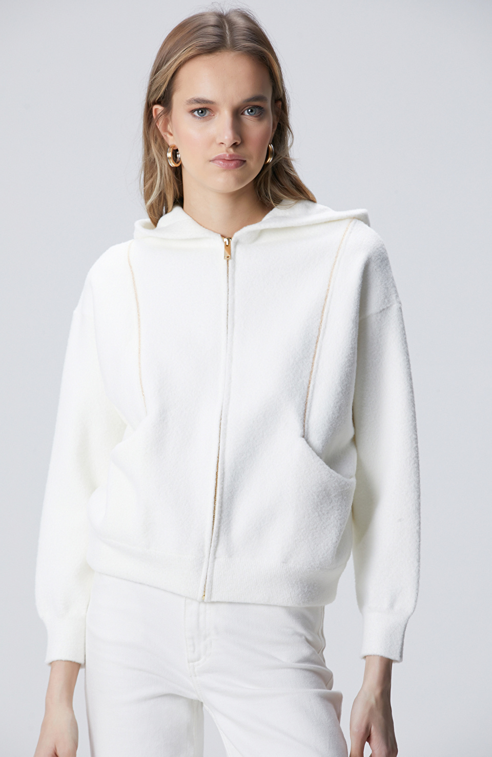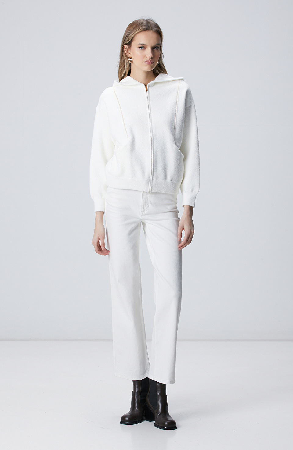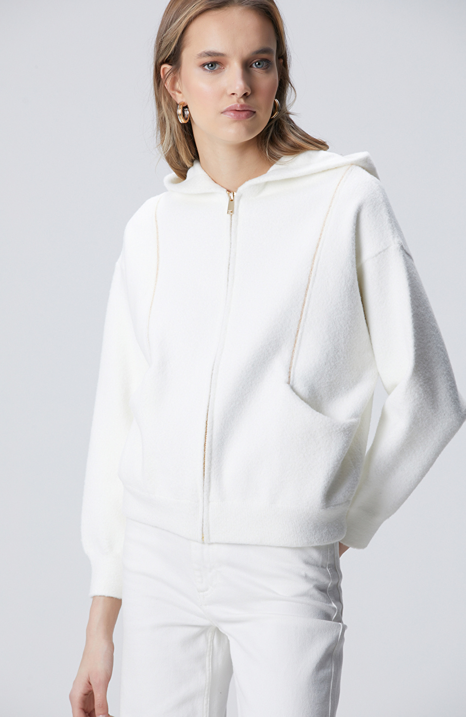 Kırık Beyaz Yumuşak Dokulu Triko Mont
